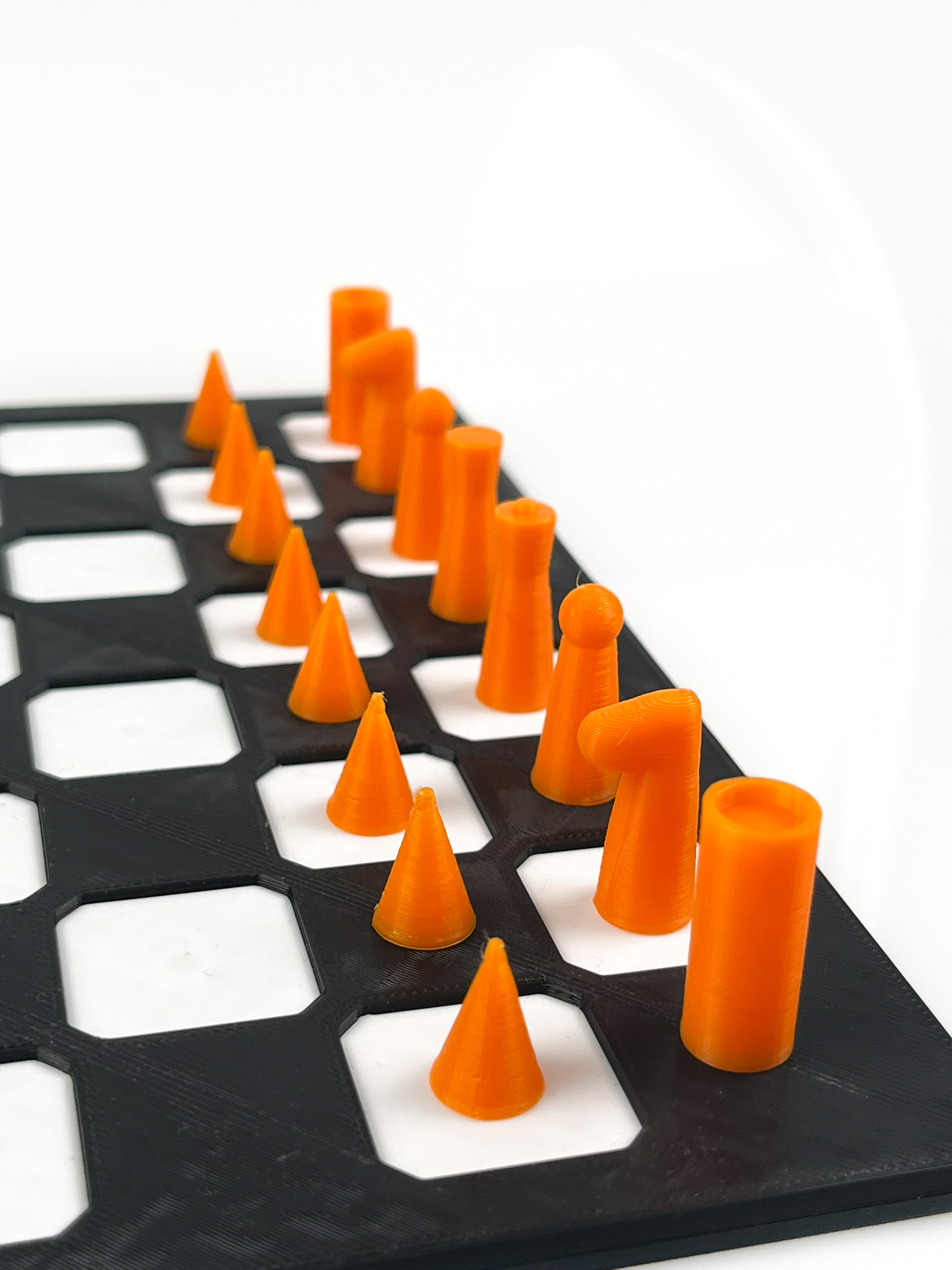 • unikalne pionki – różne kształty, które można łatwo rozróżnić dotykiem